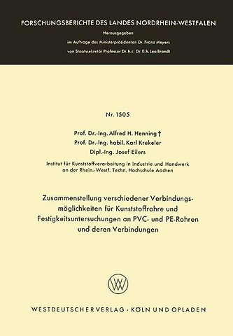 Zusammenstellung verschiedener Verbindungsmöglichkeiten für Kunststoffrohre und Festigkeitsuntersuchungen an PVC- und PE-Rohren und deren Verbindungen