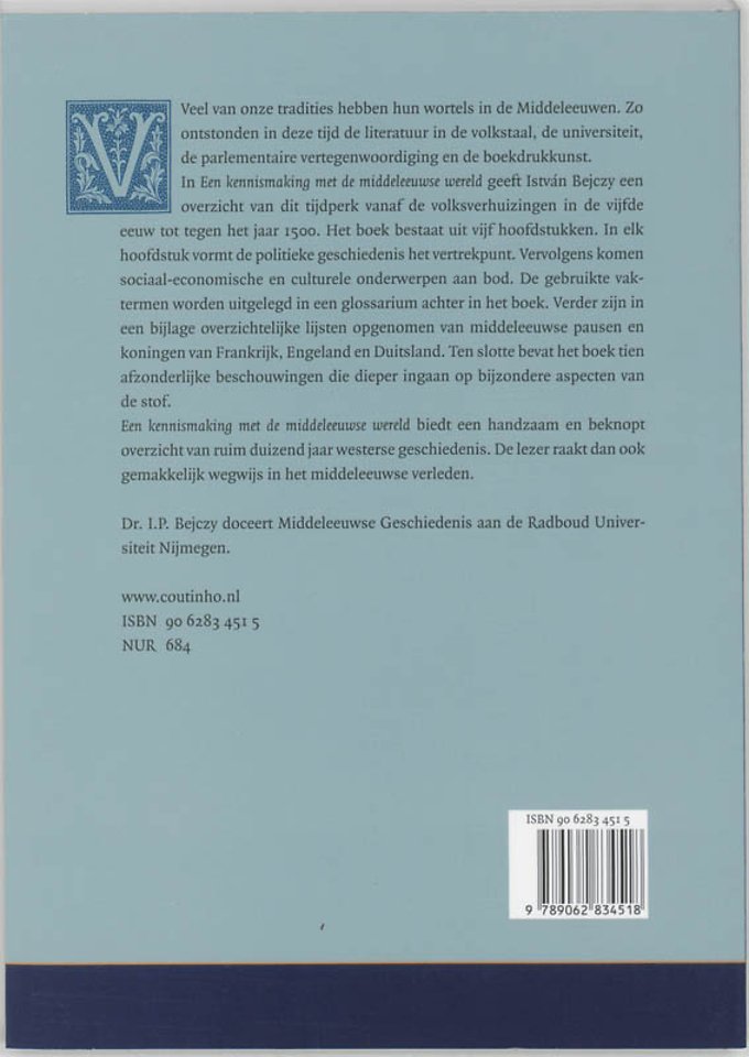 Veel van onze tradities hebben hun wortels in de Middeleeuwen. Zo ontstonden in deze tijd de volkstalige literatuur, de universiteit, de parlementaire vertegenwoordiging en de boekdrukkunst. In Een kennismaking met de middeleeuwse wereld geeft de auteur een overzicht van dit tijdperk. Het overzicht begint bij de volksverhuizingen in de vijfde eeuw en loopt door tot omstreeks 1500.