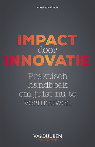 'Impact door Innovatie' is een onmisbaar handboek voor iedereen die actief met vernieuwing aan de slag wil: als directeur, professional, mkb-ondernemer of zzp’er. Het brengt innovatie dichterbij en laat zien dat innovatie niet moeilijk maar vooral leuk is. Een toegankelijk boek dat doorspekt is met enthousiasmerende voorbeelden en verhalen over successen en missers. Een werkboek met praktische methodes, vragen en opdrachten om stap voor stap de innovatie in je eigen organisatie vorm te geven.