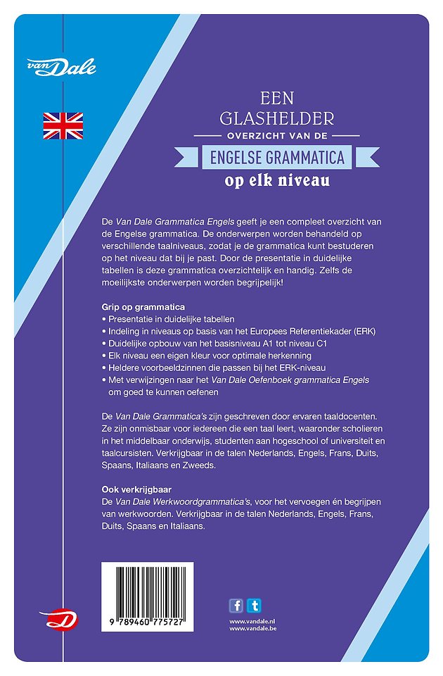 De Van Dale Grammatica Engels geeft je een compleet overzicht van de Engelse grammatica. De onderwerpen worden behandeld op verschillende taalniveaus, zodat je de grammatica kunt bestuderen op het niveau dat bij je past. Door de presentatie in duidelijke tabellen is deze grammatica overzichtelijk en handig. Zelfs de moeilijkste onderwerpen worden begrijpelijk!
