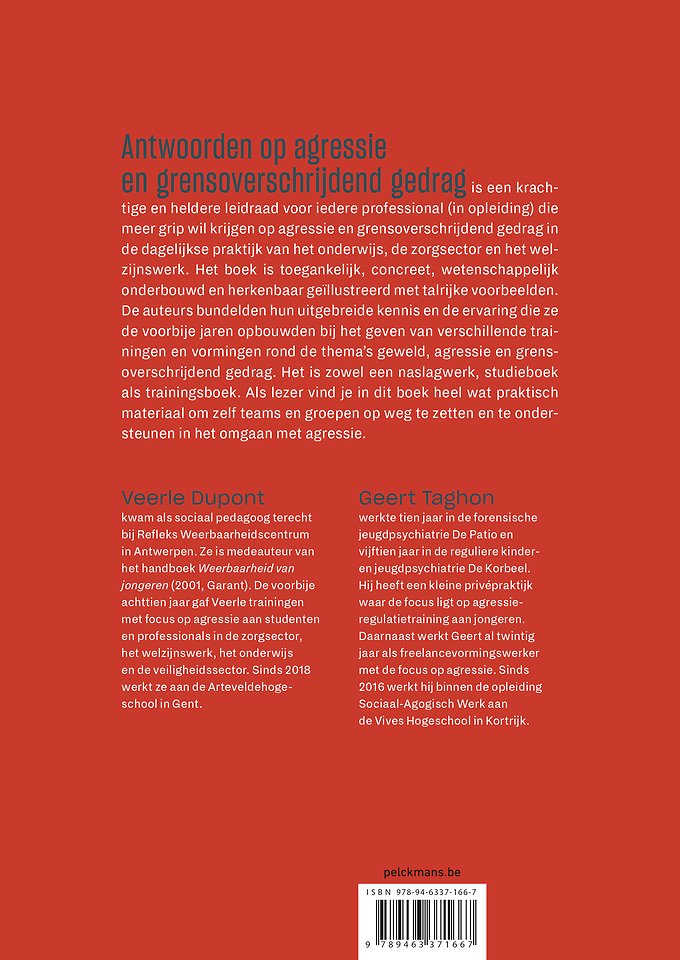 De auteurs bundelden hun uitgebreide kennis en de ervaring die ze de voorbije jaren opbouwden bij het geven van verschillende trainingen en vormingen rond de thema’s geweld, agressie en grensoverschrijdend gedrag. Het is zowel een naslagwerk, studieboek als trainingsboek. Als lezer vind je in dit boek heel wat praktisch materiaal om zelf teams en groepen op weg te zetten en te ondersteunen in het omgaan met agressie.