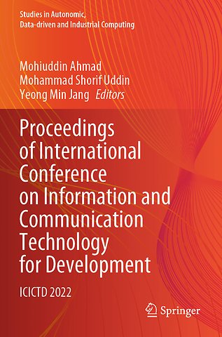 This book gathers outstanding research papers presented at the International Conference on Information and Communication Technology for Development (ICICTD 2022), held on July 29–30, 2022, at the Institute of Information and Communication Technology (IICT), Khulna University of Engineering & Technology (KUET), Khulna, Bangladesh. The topics covered are ICT in health care, ICT in e-commerce, e-governance, collective intelligence, soft computing, optimization, cloud computing, machine learning, intelligent software, robotics, data science, data security, big data analytics and IoT, information systems, computer network, algorithms, and natural language processing.